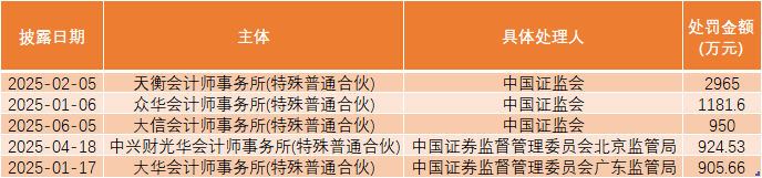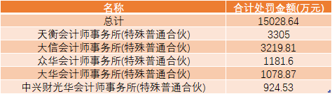 今年以来处罚金额排名前五的会计师事务所情况。数据来源:同花顺